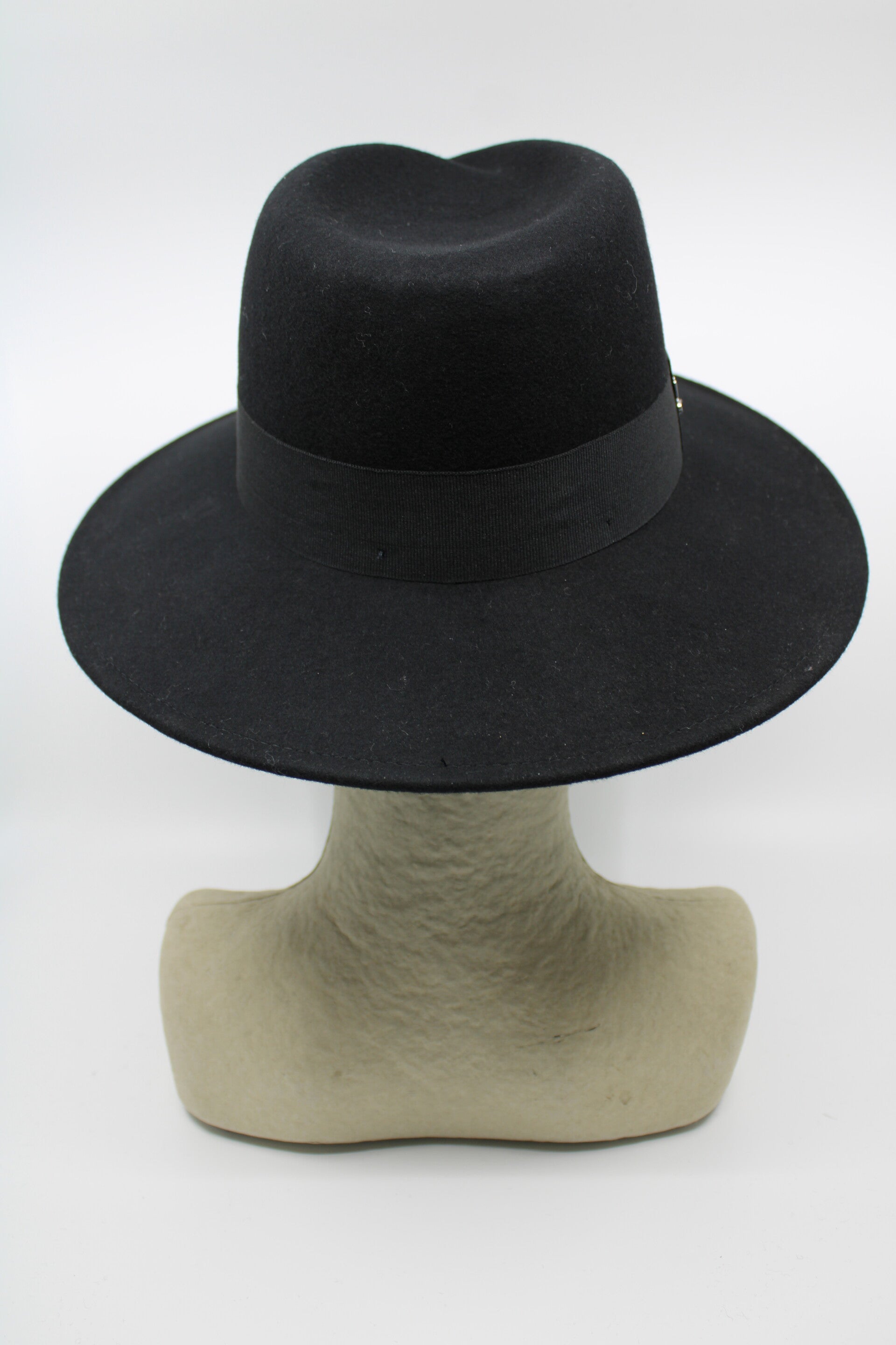 Dit model heeft een gebroken gleuf aan de voorzijde wat een speels effect heeft op de verder strakke hoed. Iets aflopende rand die niet al te groot is.