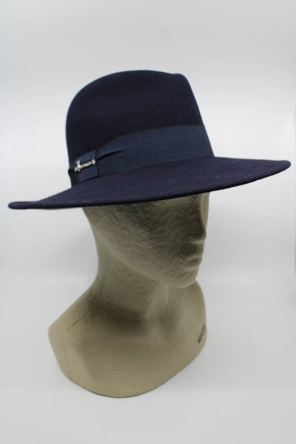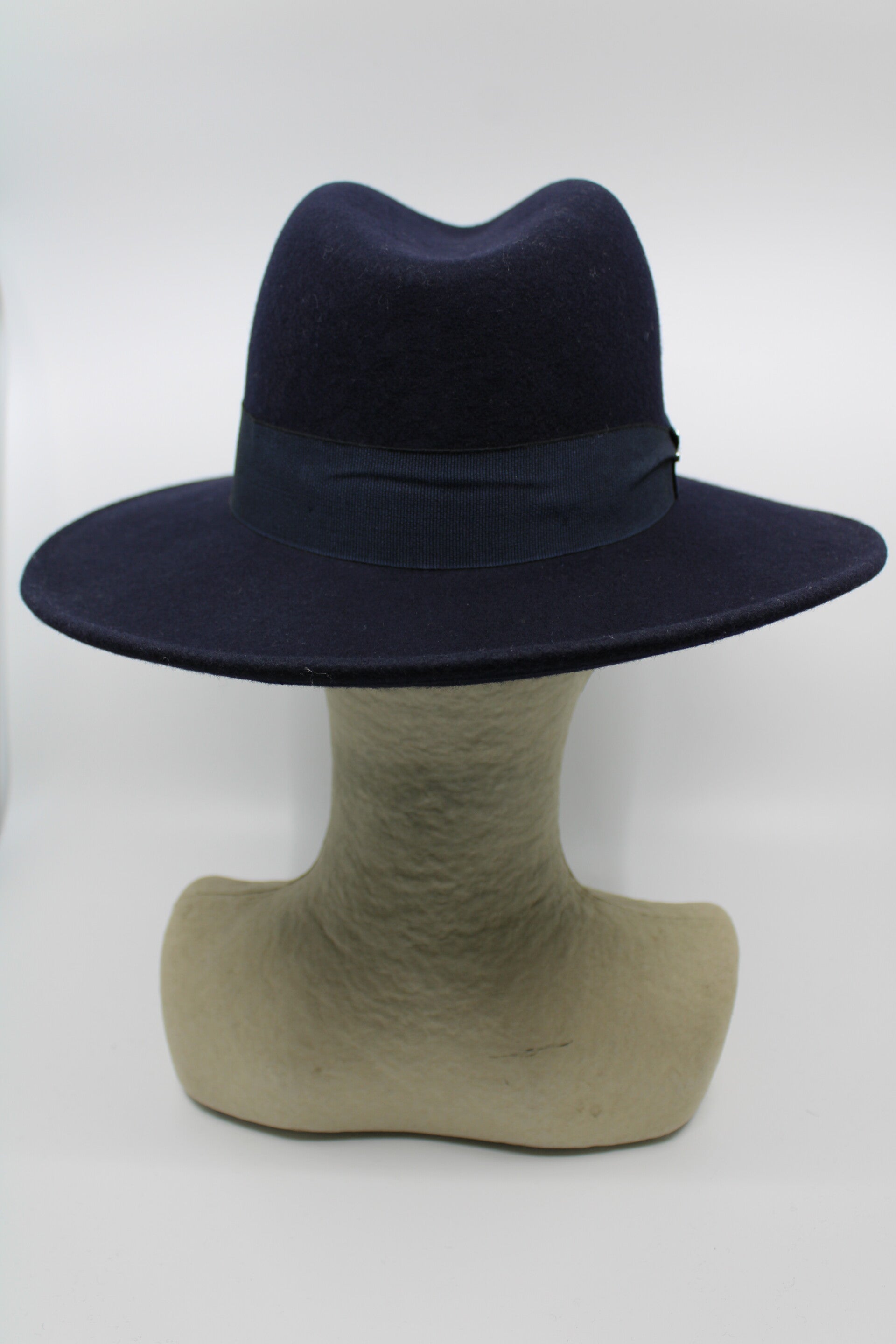 Dit model heeft een gebroken gleuf aan de voorzijde wat een speels effect heeft op de verder strakke hoed. Iets aflopende rand die niet al te groot is.