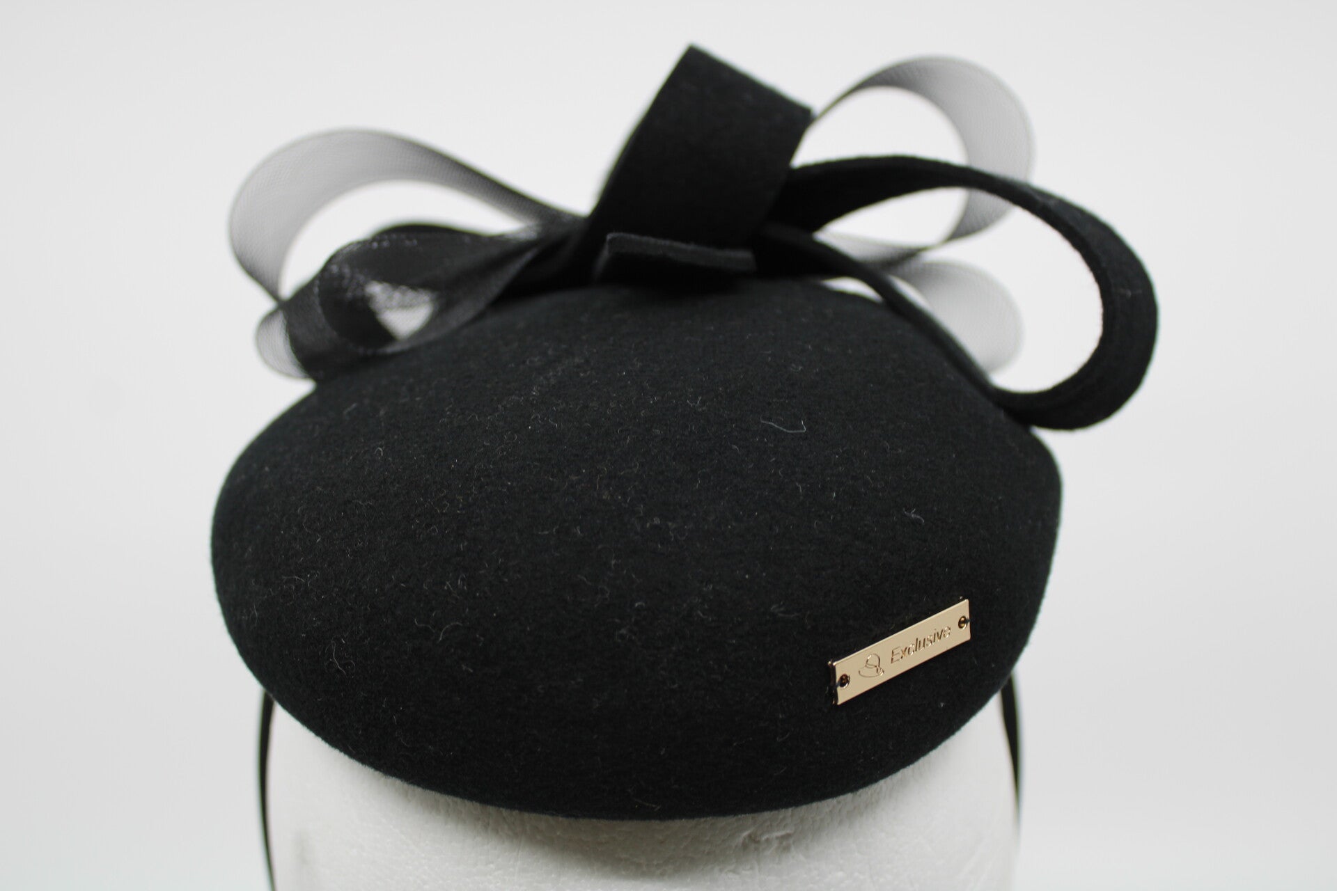 Met deze garnering wordt de platte kant voor gedragen en de bollende kant achter. Met bijpassende diadeem.