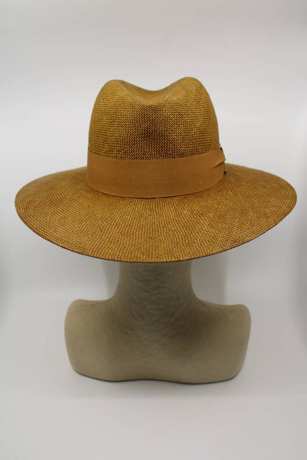 Gleufmodel met wat lagere bol en ronding aan de voorzijde ipv inkepingen van een jagershoed. Rand is vrij recht. Afgewerkt met een brede band in dezelfde kleur en zilverkleurige gesp. (gesp kan uiteraard ook in goudkleur) Geschikt voor hoofdomtrek 56 tm 58 cm.
