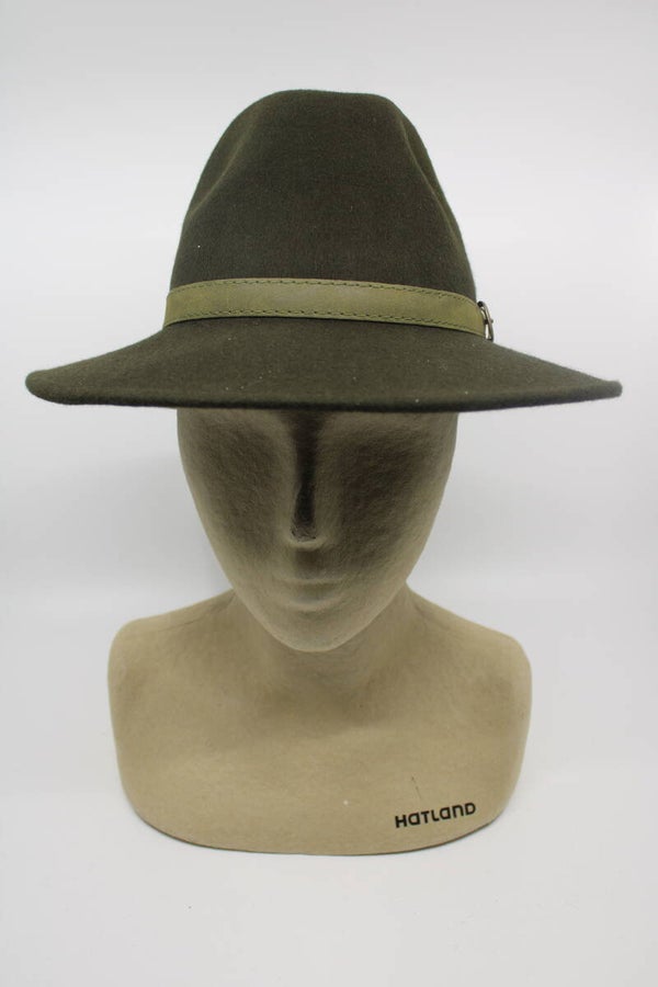 Sportieve hoed met een niet al te grootte rand. Afgewerkt met een bijpassende leren riem. In meerdere maten verkrijgbaar.