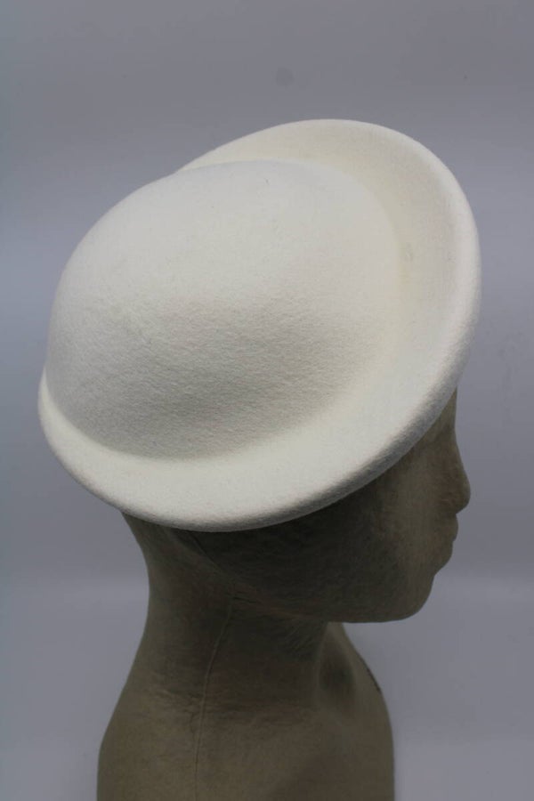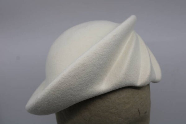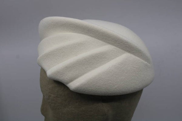 Nieuwe vorm waarvan de ene kant geplooit is en de andere kant als het ware een schotel is. Kan leuk iets naar achteren gedragen worden maar ook op het voorhoofd. Geschikt voor hoofdomtrek 56 tm 59 cm.