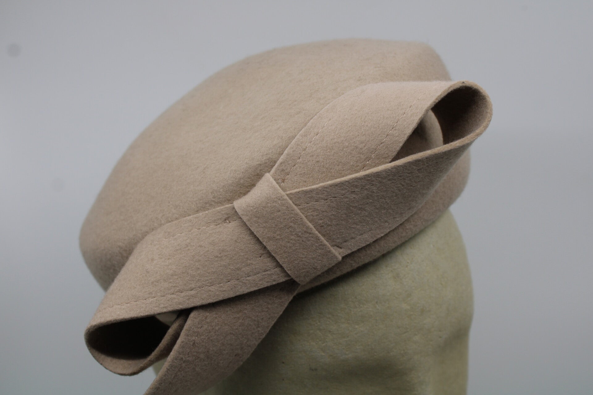Royale dop, geschikt voor een kleinere hoofdomtrek van 54 tm 56 cm. Niet te hoog en loopt iets schuin weg. Met leuke strik garnering. Met kammetje, kan dus naar voren of naar achteren gedragen worden.