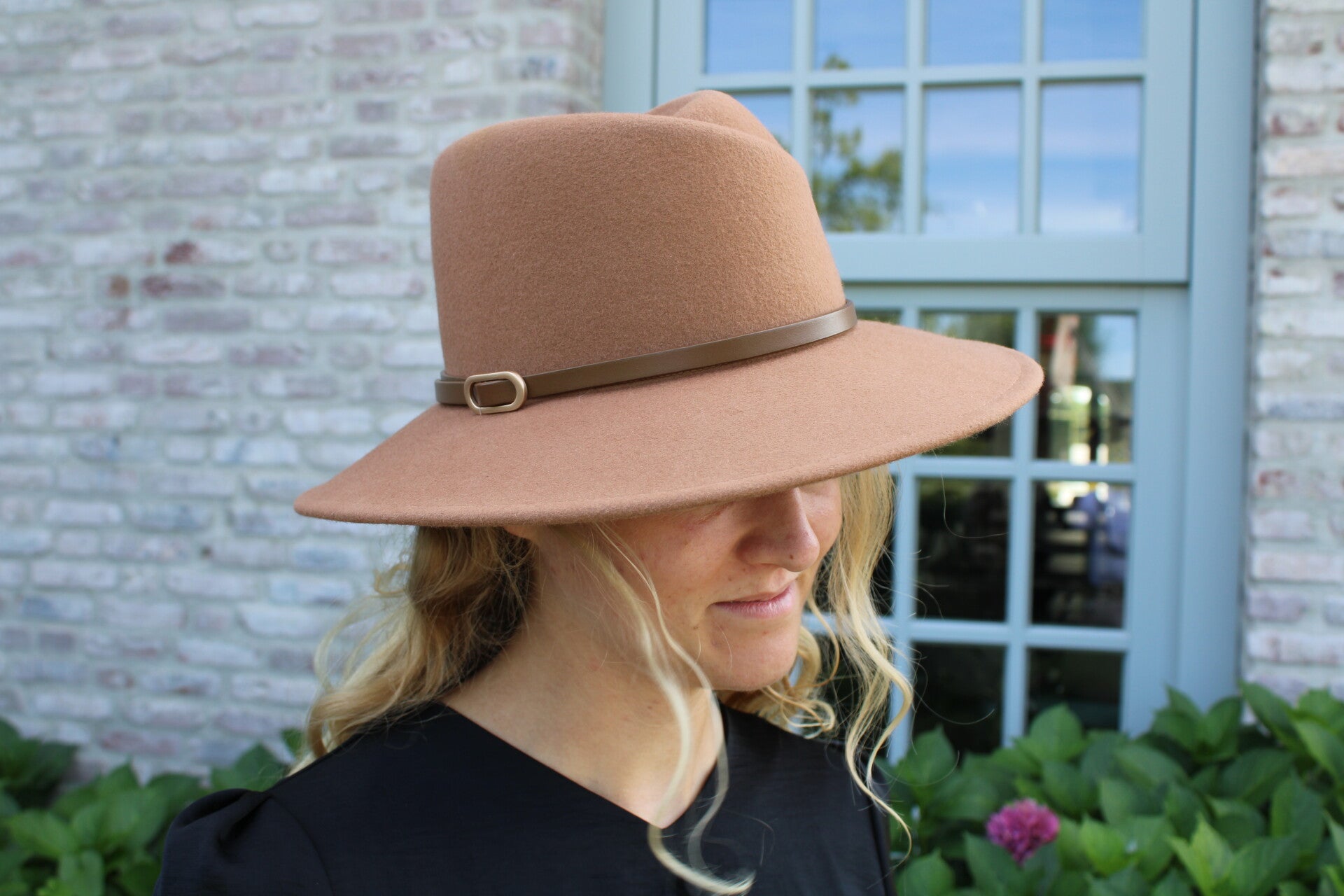 Klassieke hoed met speels effect door de gebroken gleuf van voor.